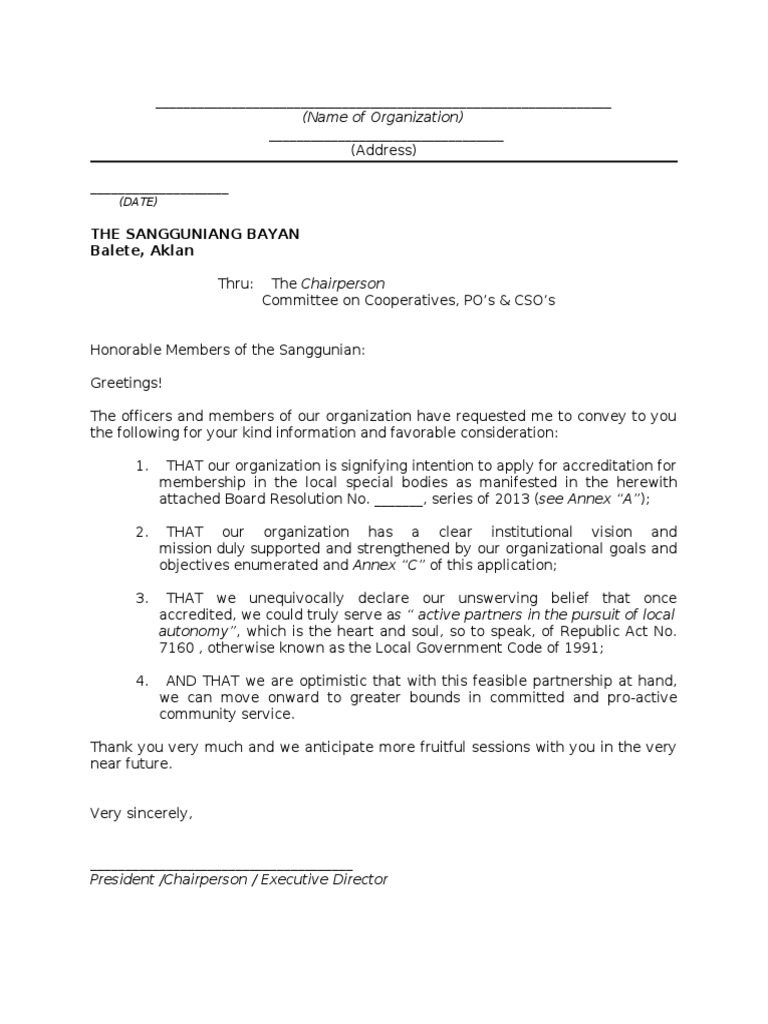 Letter of Intent for Accreditation