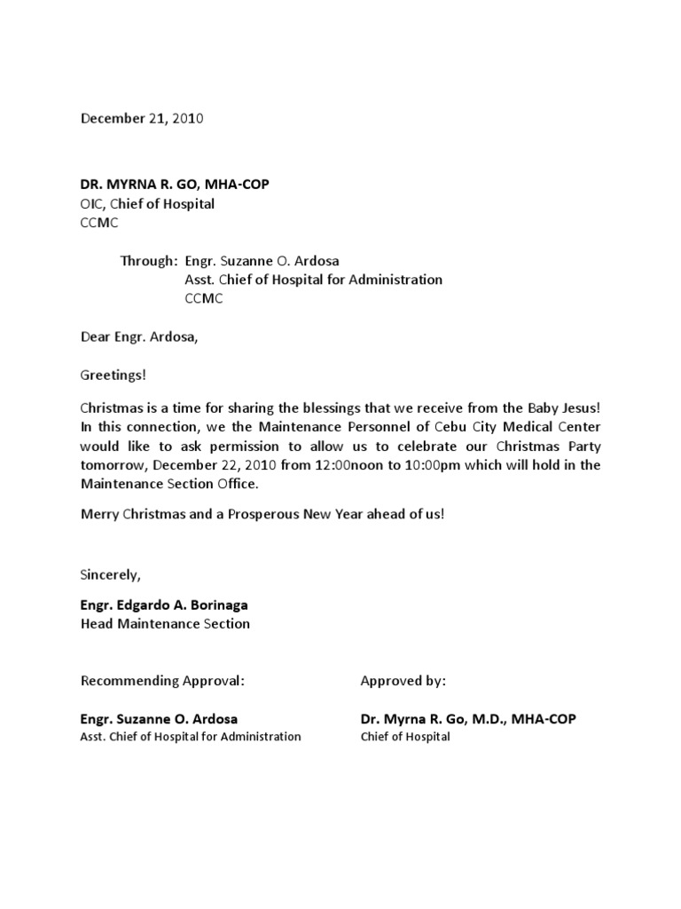 Solicitation Letter Maintenance Section Xmas Party 2010