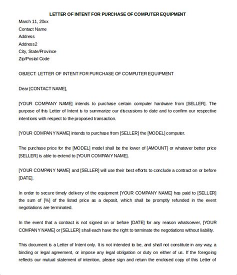 Sample of our letter of intent acquisition of business Except as specifically set forth herein, this Letter of Intent shall not constitute an agreement between the parties and no agreement shall be deemed to exist until execution of a definitive purchase agreement. A letter of intent may be used for a manufacturing agreement, share purchase agreement, services agreement, development agreement. Therefore, the parties acknowledge that remedies at law will be inadequate for any breach of this Agreement and.