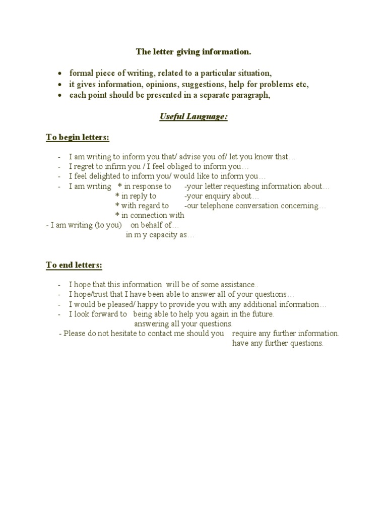 Sample Letter Giving Information. Finally, I would also like some information concerning the cost of these courses. In many cases of giving wrong information, there is always room for correcting the mistakes.