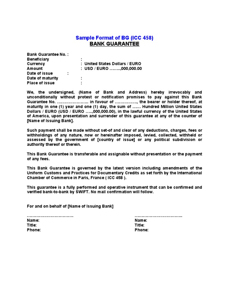 SBLC and BG FORMAT INSTRUMENT | Letter Of Credit | Banks