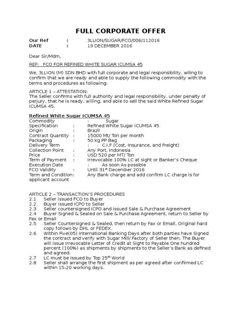 FULL CORPORATE OFFER.docx | Letter Of Credit | Economies